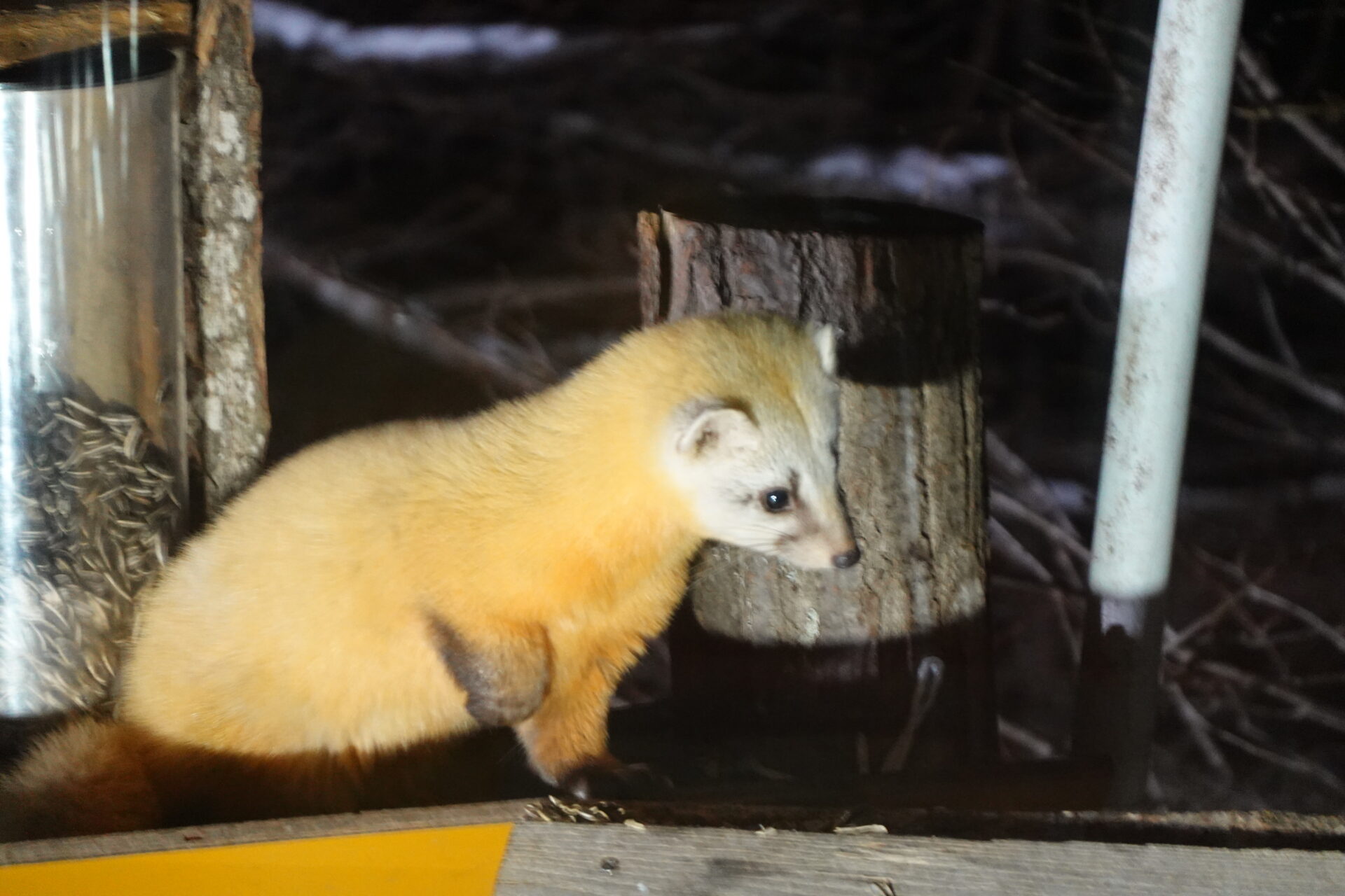 このところ寒い日が続くと野鳥の餌台には沢山の野鳥の他夜には夜行性のテン やキツネがやってきます。