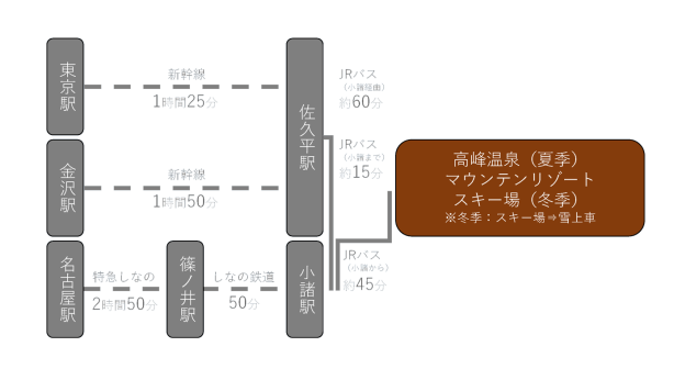 - 東京から 新幹線とバスで 2時間半